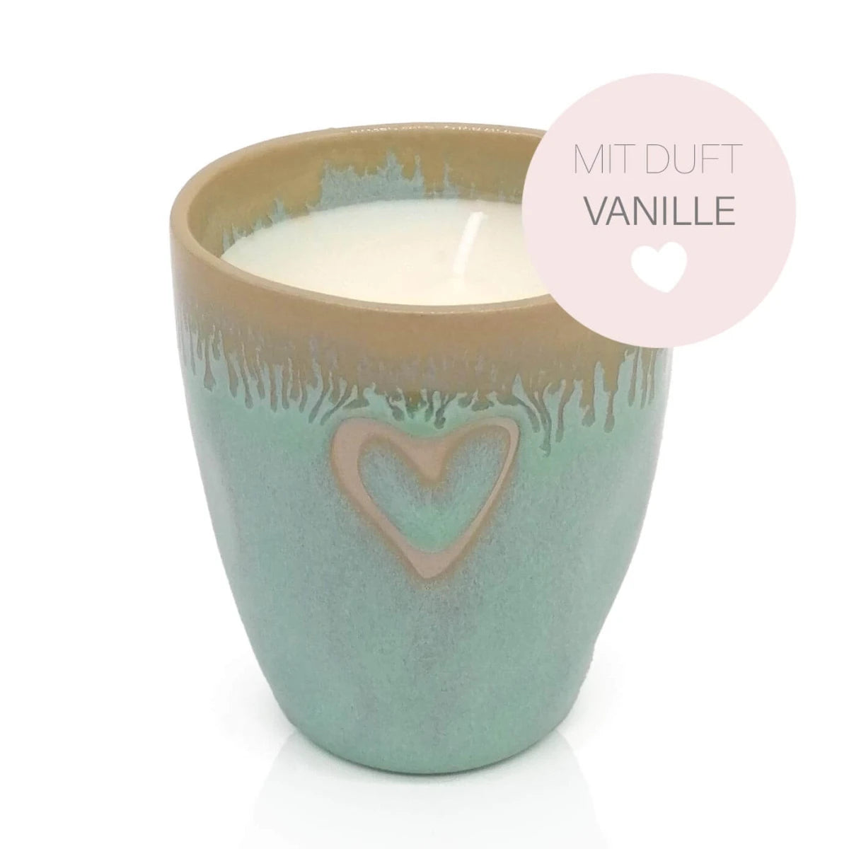 Der handgefertigte Kerzenbecher aus hochwertigem Steinzeug im zartem Türkis mit warmen Farbverlauf wird durch ein feines Herzmotiv veredelt - ein Symbol für Liebe, Achtsamkeit und innere Ruhe. Jede Kerze ist ein kleines Unikat und bringt sofort Gemütlichkeit in dein Zuhause.